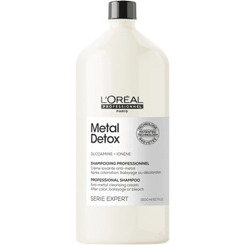 Loreal Professionnel Metal Detox Shampoo Protects coloured hair from up to 87% less breakage during technical services.* Suitable for all types of coloured hair Hair feels smoother, softer and up to 2x shinier** Luxurious foaming texture and fresh citrus scent *Combing test. Pre-treatment, shampoo and mask vs classic shampoo on bleached hair ** Instrumental test, shampoo and mask vs. unwashed hair