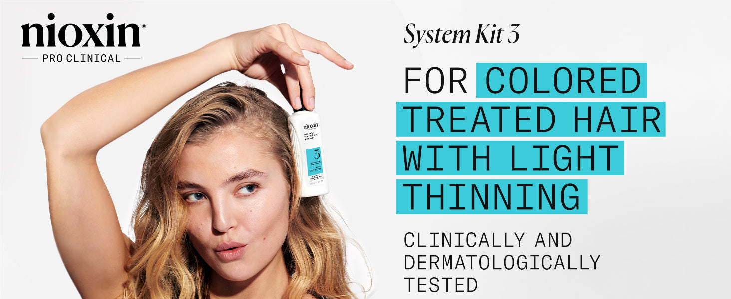 The Nioxin System 3 is specially formulated for colored hair that is noticeably thinning.