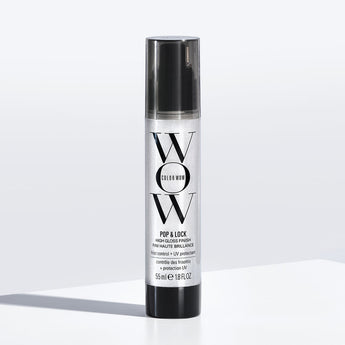 For hair that is dry, dull or frizzy, Color Wow Pop & Lock Glossing Serum creates a radiant glimmer while taming flyaways and sealing split ends. Colour-treated hair often has a raised cuticle layer that doesn't lay flat or reflect light, causing dullness and frizz. Pop & Lock infuses an oil and serum base to restore hydration, moisture and elasticity. Forming a crystal clear sheath around the hair, this ultra-light formula locks down the cuticle to eradicate frizz while shielding the hair from UV and heat damage.  Vegan and alcohol free, Pop & Lock can be layered on wet or dry hair without a greasy build-up, creating a sleek texture with blinding shine.