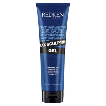 Redken's Max Sculpt Gel is a super strong hold hair gel that empowers styles to stay put with long lasting control. This professional product provides maximum hold to flake-free control and provides added thickness and body with a high shine finish.