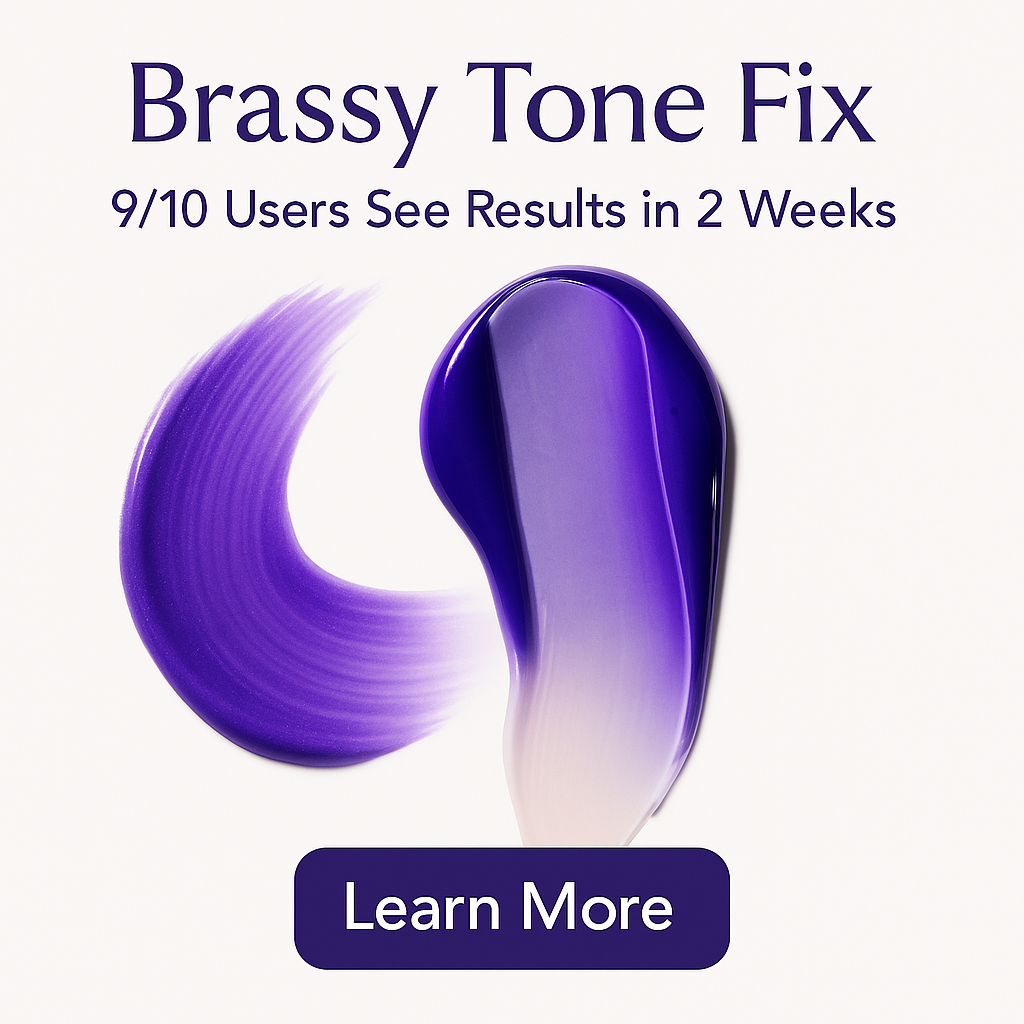 RPR Brighten My Blonde neutralizes unwanted yellow tones with violet pigments, promoting a cooler, more vibrant blonde. Color-correcting products can enhance blonde hair's appearance, resulting in brightness and tone improvements after a few uses.