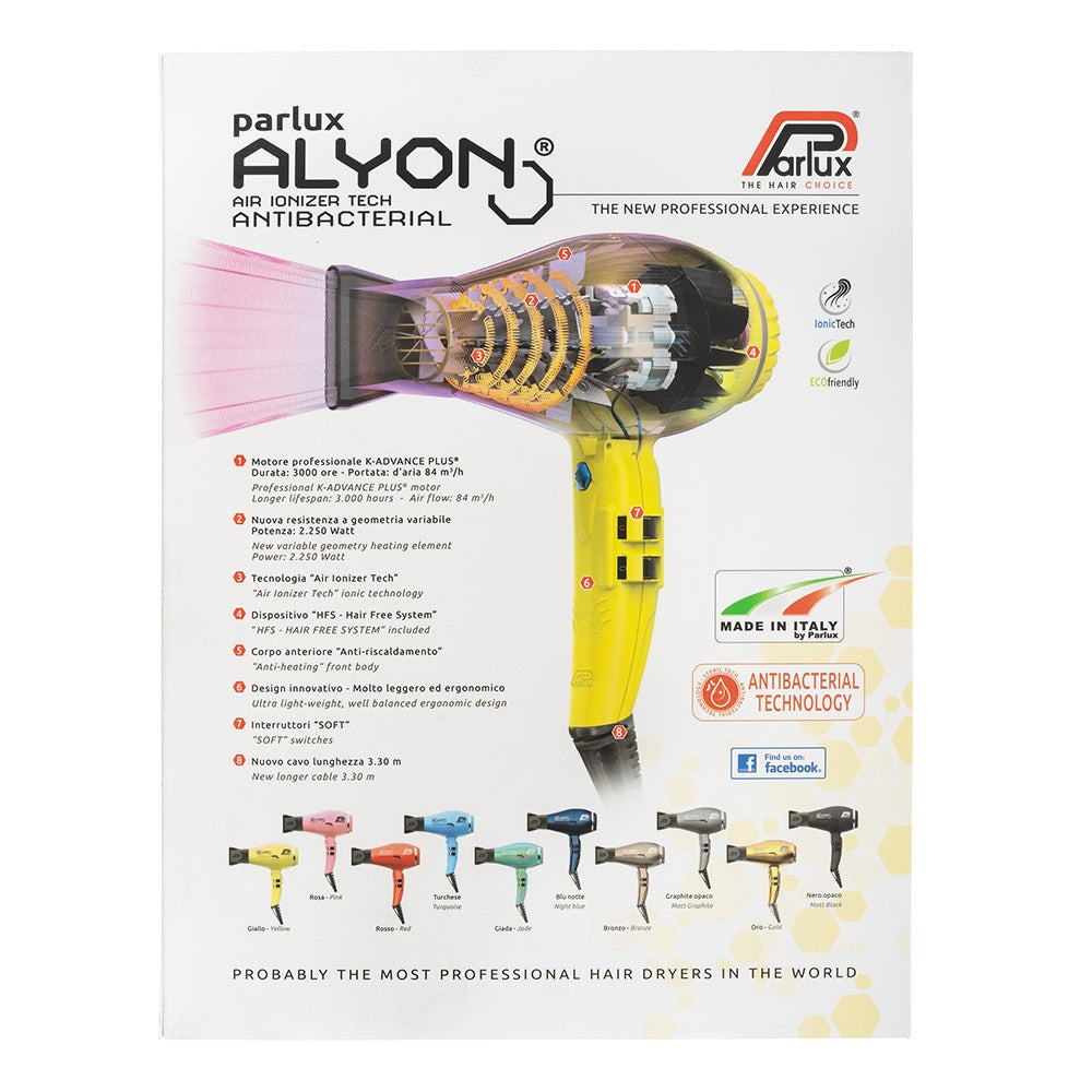 Parlux Alyon Air Ionizer Tech Hair Dryer 2250w Yellow Air Ionizer Tech ionic technology creates smooth, shiny results while being kinder to hair